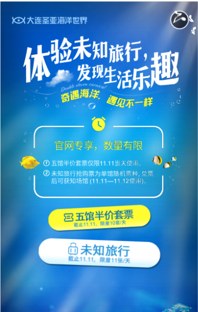 主题公园微信营销:大连圣亚海洋世界双十一微活动