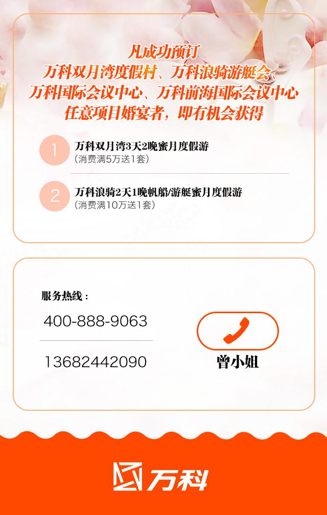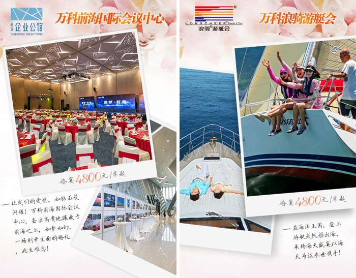微海报展示主要以项目介绍、价格、预订为主要内容打造万科婚宴优惠季。