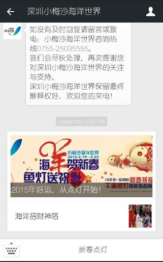 深圳小梅沙海洋世界一直是唐宋中国的年度服务客户,根据市场需求,品牌宣传需要,也更是为了回馈一直支持与关注小梅沙的广大朋友。正值新春佳节之际,结合海洋世界主题,特推出“海“羊”贺新春  鱼灯送祝福“  新春活动,活动的主要目的是增加客户与景区的粘度,唤起客户对景区的关注和激情,产生二次销售;