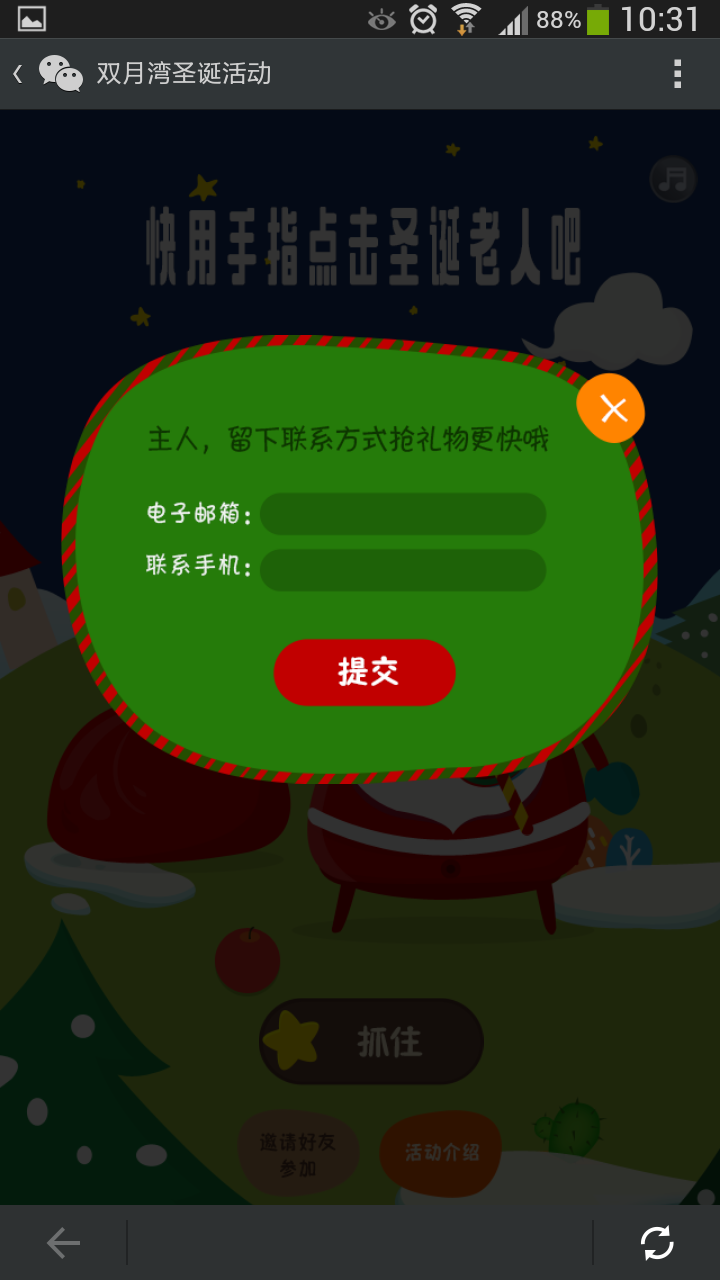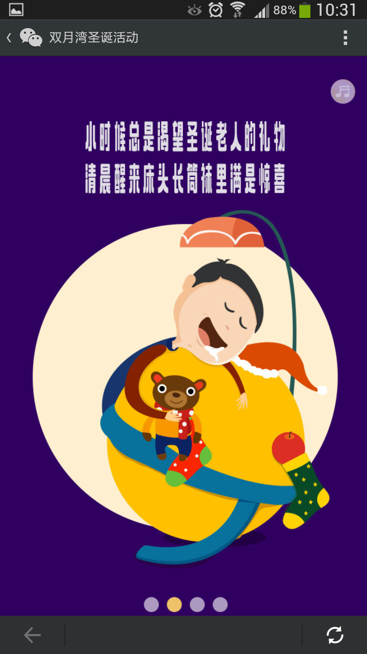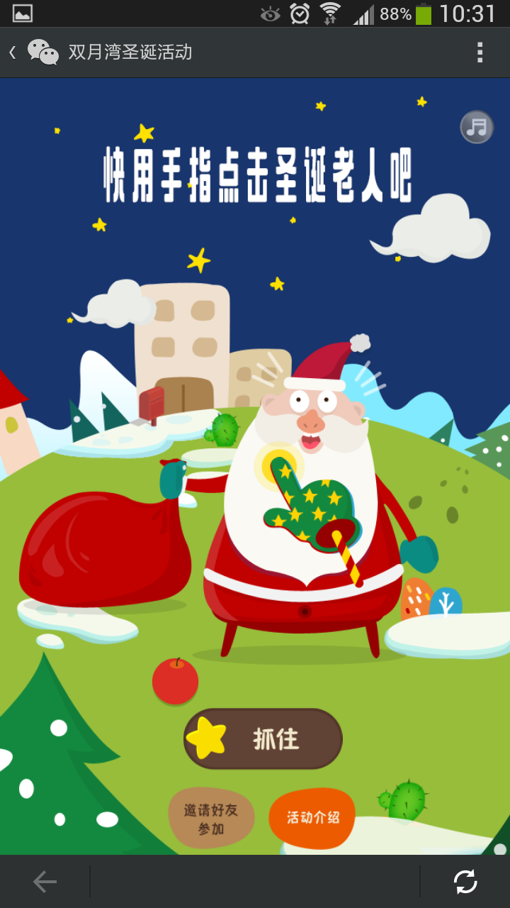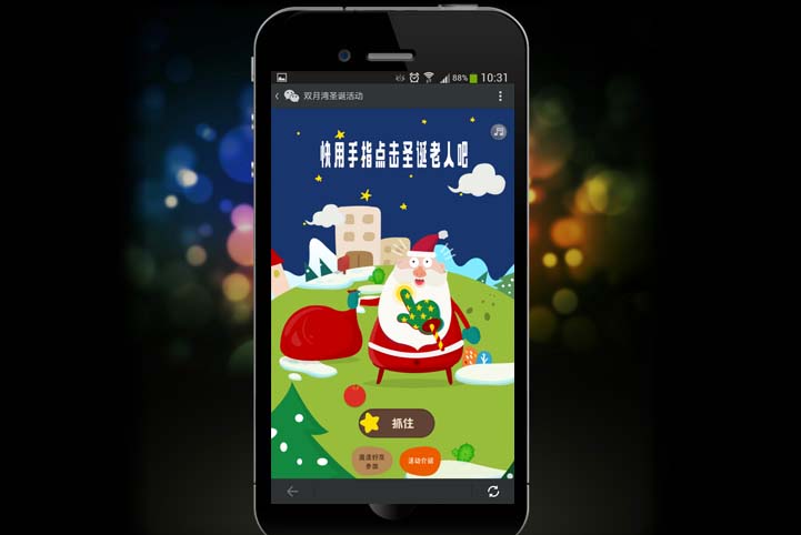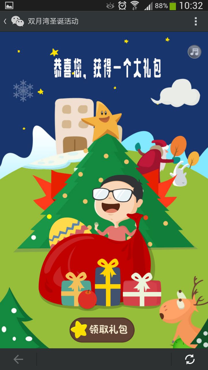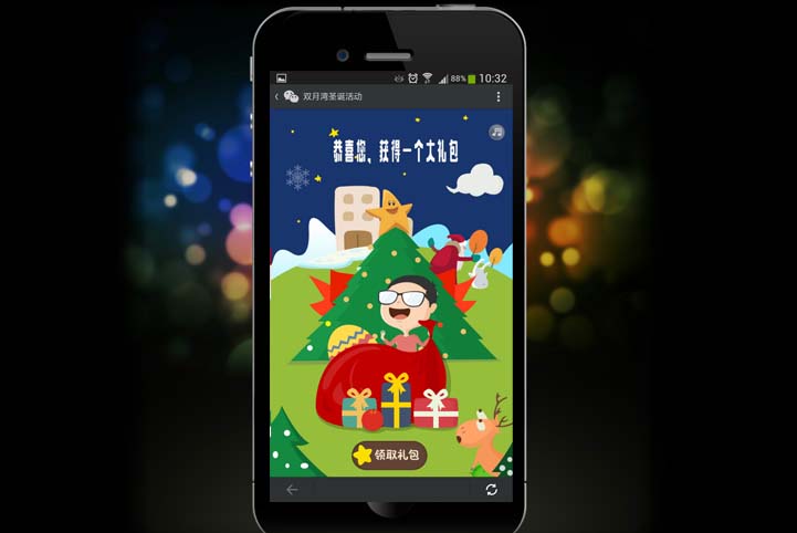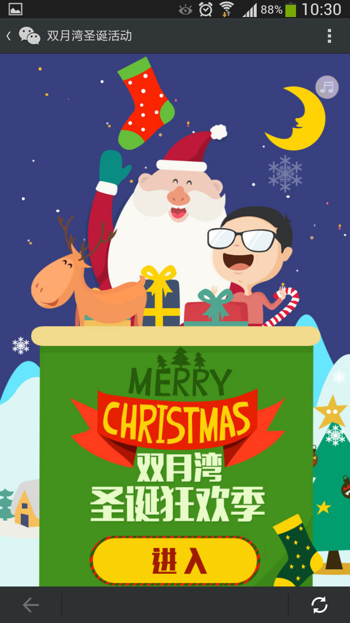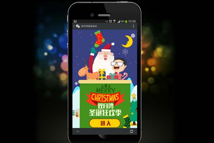首先,以当季节庆圣诞主题来渲染主题氛围,让用户进来浏览一目了然,并在首页展示项目信息以及活动标题。