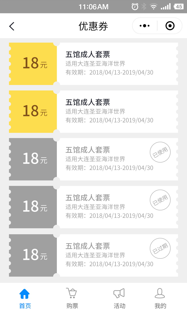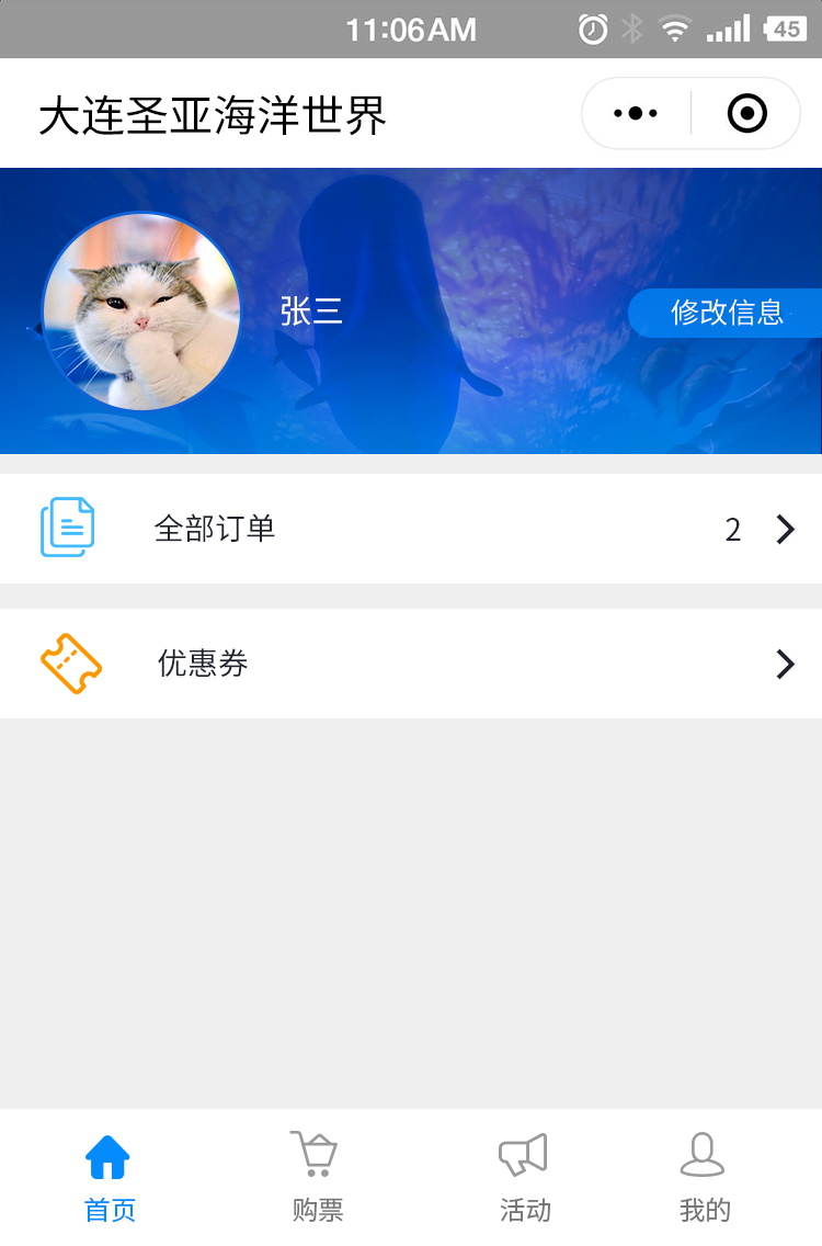 大连圣亚紧跟时代潮流,开发景区官方小程序,为广大游客提供更便捷的预订通道,以购票服务及活动推送为主要职责,结合优惠券及会员体系。