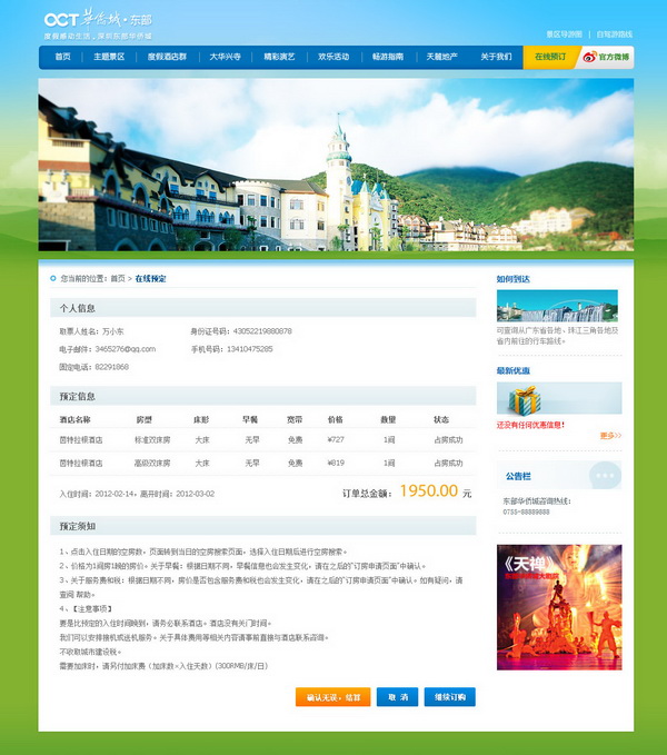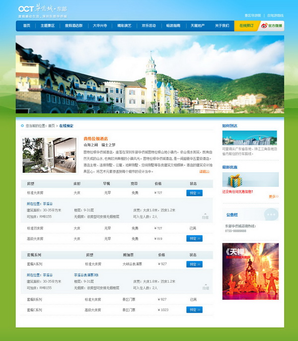 电商预订开发:深圳东部华侨城酒店预订系统