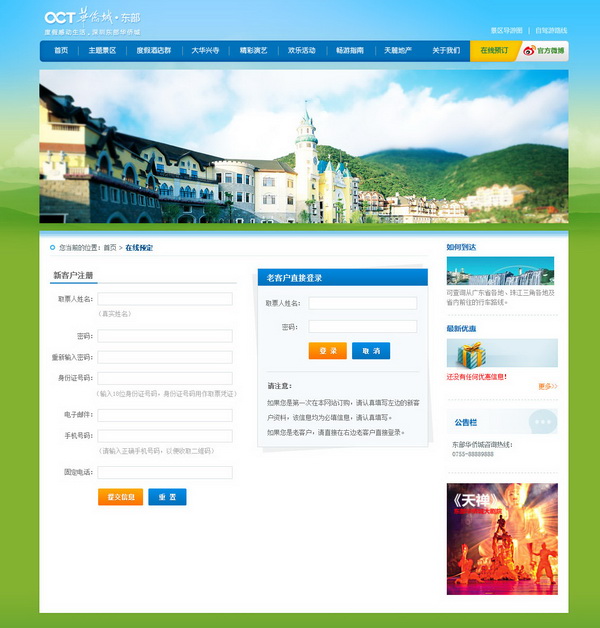 功能上,实现景区门票、酒店、娱乐表演、温泉等各种票种的在线预售,提供门票门市格格、网上价格、剩余票数等基本信息查询功能以及用户注册、会员登录等功能,支持银联网购和东部华侨城EAST卡支付;操作流程上,要求简单、便捷,从用户需求出发,提供良好的用户体验,体现东部华侨城贴心、周到服务态度。