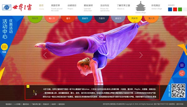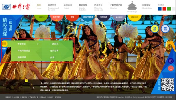 世界之窗,是国内甚至国外都相当知名的主题文化旅游景区,它是深圳旅游的必选之地,随着多年的运营,现在已经是一个娱乐休闲历史文化旅游的综合景区。此次世界之窗官网改版在景区界引起骚动,作为景区行业的先驱,一举一动备受关注。唐宋中国服务商连续两届承载世界之窗官网改版工作,伴随着不断的学习与积累在实施新项目的建设中,无论从信息架构、视觉创意设计、前端制作、功能开发等方面均有了全新的突破。通过前期的市场调查,行业趋势及景区特色优势掌握,分析游客的心理行为并对景区的发展事态的了解等方面来展开工作。此次互联网数字服务不仅延续了世界之窗的品牌定位,而且更加放大世界之窗景区的独有特色,营销活动重点突出,信息浏览方便,用户体验度方便简洁。每个活动主题页面设计与景区特色文化相结合,活动主题运用鲜明,品牌宣传明确有效,从而进一步扩大品牌知名度。为了达到互动的效果,有微信、微博在线互动,在线订票系统,在页面底栏增添我要分享按钮等。通过景区各景点特色图片展示,以及活动表演的精彩瞬间画面,极大的吸引了顾客,真正意义上做到设计为营销服务。整个网站的页面采用扁平化设计所有的元素边界都干净利落,没有任何羽化,渐变,或者阴影。采用更精致、创意的导航和按钮使得界面干净整齐,使用起来格外简洁。这种全新的建设方式不仅美观实用、重点突出,访问速度加快又利于传播,能够极大的促进访客的入园,刺激消费,并能转化为忠实的粉丝。这也是唐宋中国帮助世界之窗景区实现智慧旅游营销体系改造的最终目标。项目于9月份顺利完成改版工作。