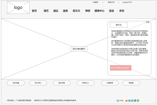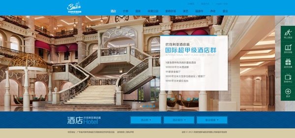 每个一级栏目导航都有设计一个一级导航页 如图5所示,一级栏目设计页对整个酒店有一个总介绍,在页面底部设计有二级导航栏,右侧快捷功能区,整个布局访客看起来非常清晰明了,不需要花时间研究,对于后期的网站维护,网站所有的编辑区都可在后台编辑更新内容,智能的后台系统支持网站无限扩展,不同的营销的阶段,网站所呈现的视觉内容也会不一样。