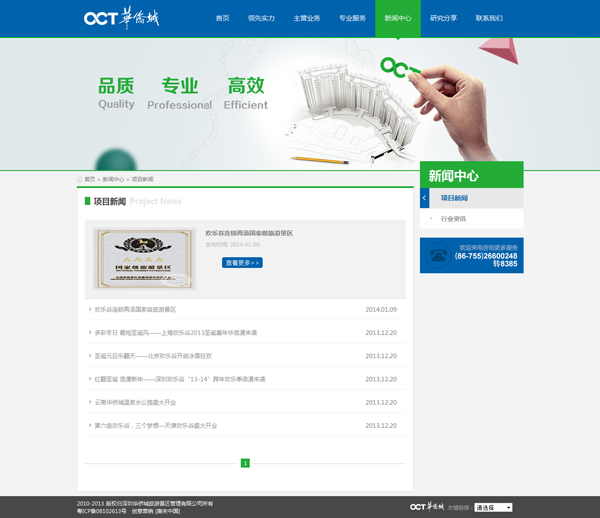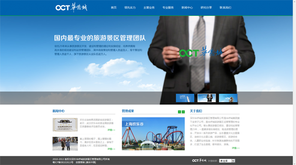 网站内页采用蓝色为主色调,统一的时代气息,统一的淡蓝色调,既符合华侨城优质生活的创想家的理念又可以从网站的设计中折射出旅游景区的管理服务理念