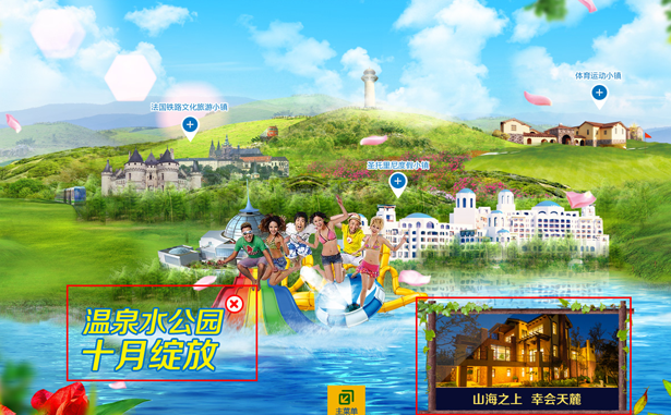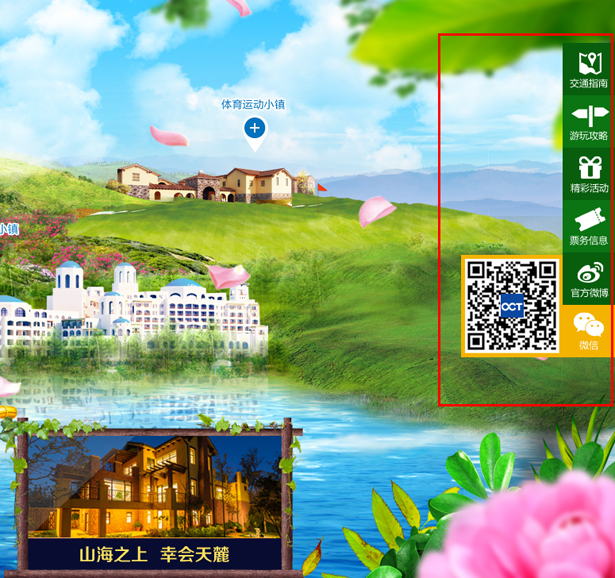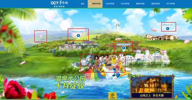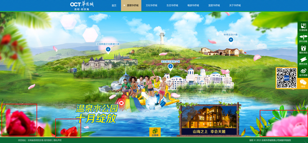 在设计中充分结合景区的景点和游玩项目,呈现活泼、欢乐和趣味的游玩氛围,使得浏览者能融入其中