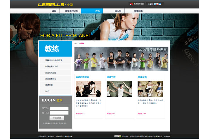 莱美中国官方网站的策划亮点主要集中在以多种功能体系支撑的会员系统,使会员的在线体验程度达到最大化的完善与运用,并高度体现会员至上原则。唐宋中国结合莱美会员制度的实际情况,在线细分不同会员类别,并实现了不同会员的多种权限配用。如:在现有的教练和俱乐部两大类会员中,各自享有不同权限,但均可根据自身需求基础上进行不同程度的上传、下载、资料分享、互动等体验。