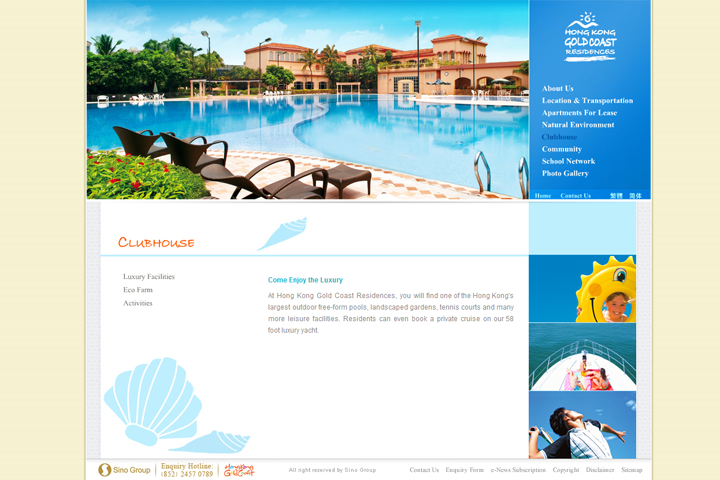 这次设计的网站目标人群针对于中上阶层,整个网站风格大气简约,清新柔和同时又充满写意。非常契合黄金海岸目标人群的口味。