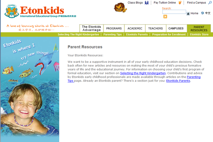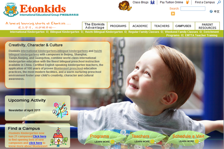网站设计开发:伊顿国际教育集团教育类网站开发设计