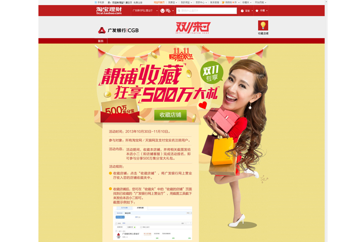 金融理财类淘宝页面设计:广发银行淘宝网上营业厅