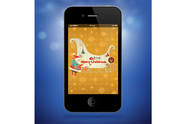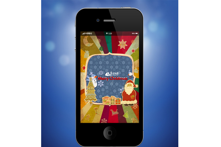 根据品牌文化和特点,合理运用品牌和圣诞节元素,设计多款不同主题手机桌面壁纸,画面要求设计精美,具有强烈视觉感染力,体现浓厚的圣诞节欢乐气氛;用户可随意搭配不同主题框架和背景,并通过多种即时互动工具与好友分享。